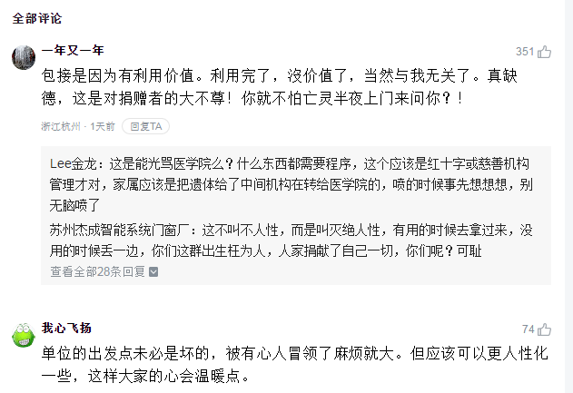 遗体捐献是生命健康的必需,也是社会文明的体现。据中国人体器官捐献管理中心数据显示,截至今年4月初,我国已登记器官捐献志愿者118万余人,成功实现捐献2.3万余例,捐献器官超过6.5万个。中国每百万人口年捐献率,已从2010年的0.03达到目前的4.53,年捐献量位居世界第二位。这里面,离不开万千杨家珊一样的善心人士的示范引导。倘若,这样莫大的善心都得不到应有的尊重和保护,“捐献遗体”还得自取骨灰,公益援助徒留伤心,还会有多少人甘愿步其后尘?