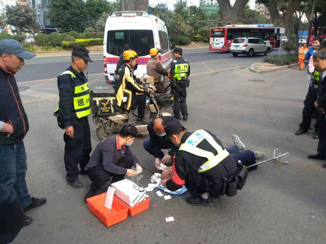 见此,他们马上组织队员对现场进行保护,同时安排人员疏导交通避免堵塞出现二次事故,并立即拨打120呼叫急救到场处理。